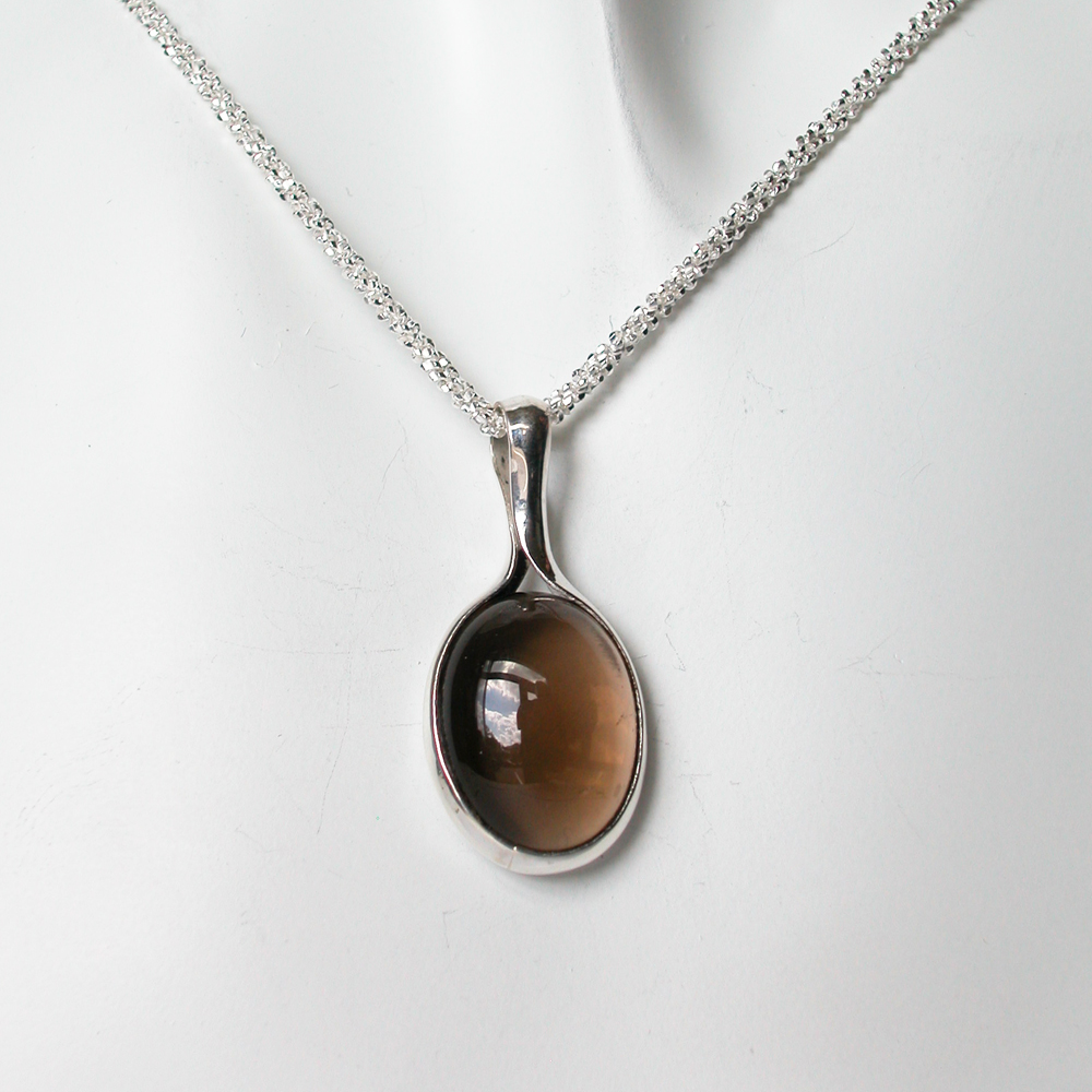Anhänger aus Silber mit Rauchquarz-Stein. Der braun schimmernde und fast durchsichtige Stein