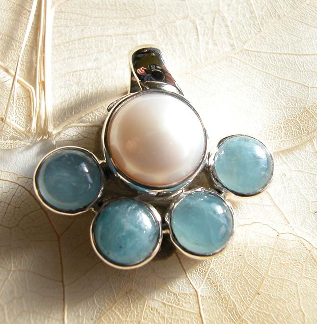 Anhänger aus Silber mit Aquamarin und Perle