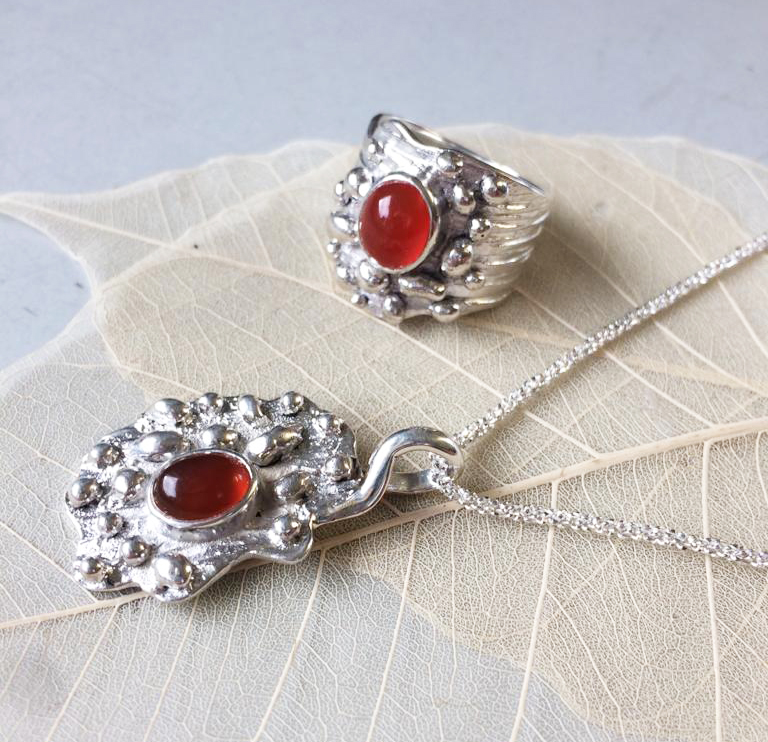 Ein wunderschöner und einzigartiger Anhänger aus Silber 925 mit einem Karneol-Stein, in