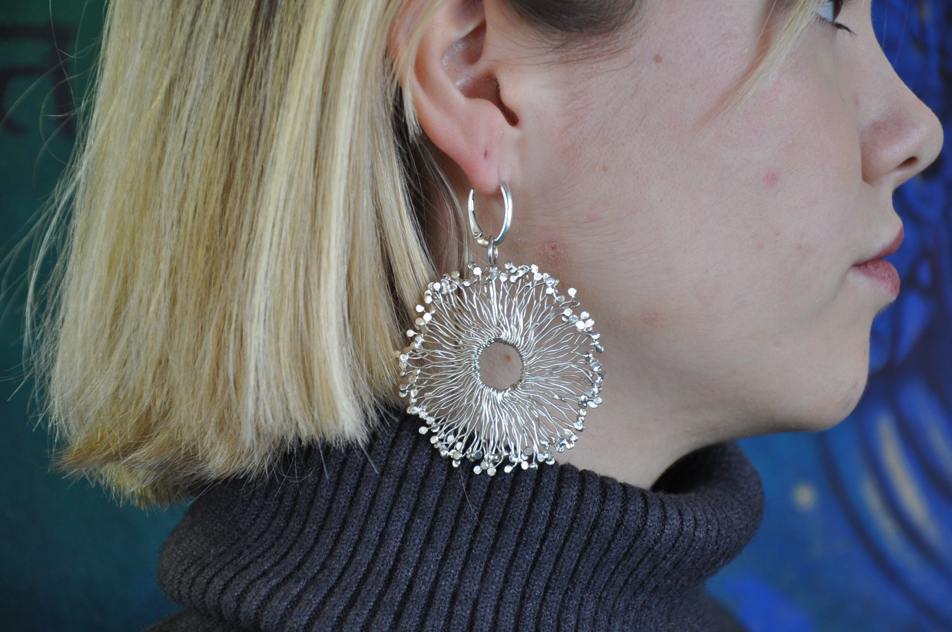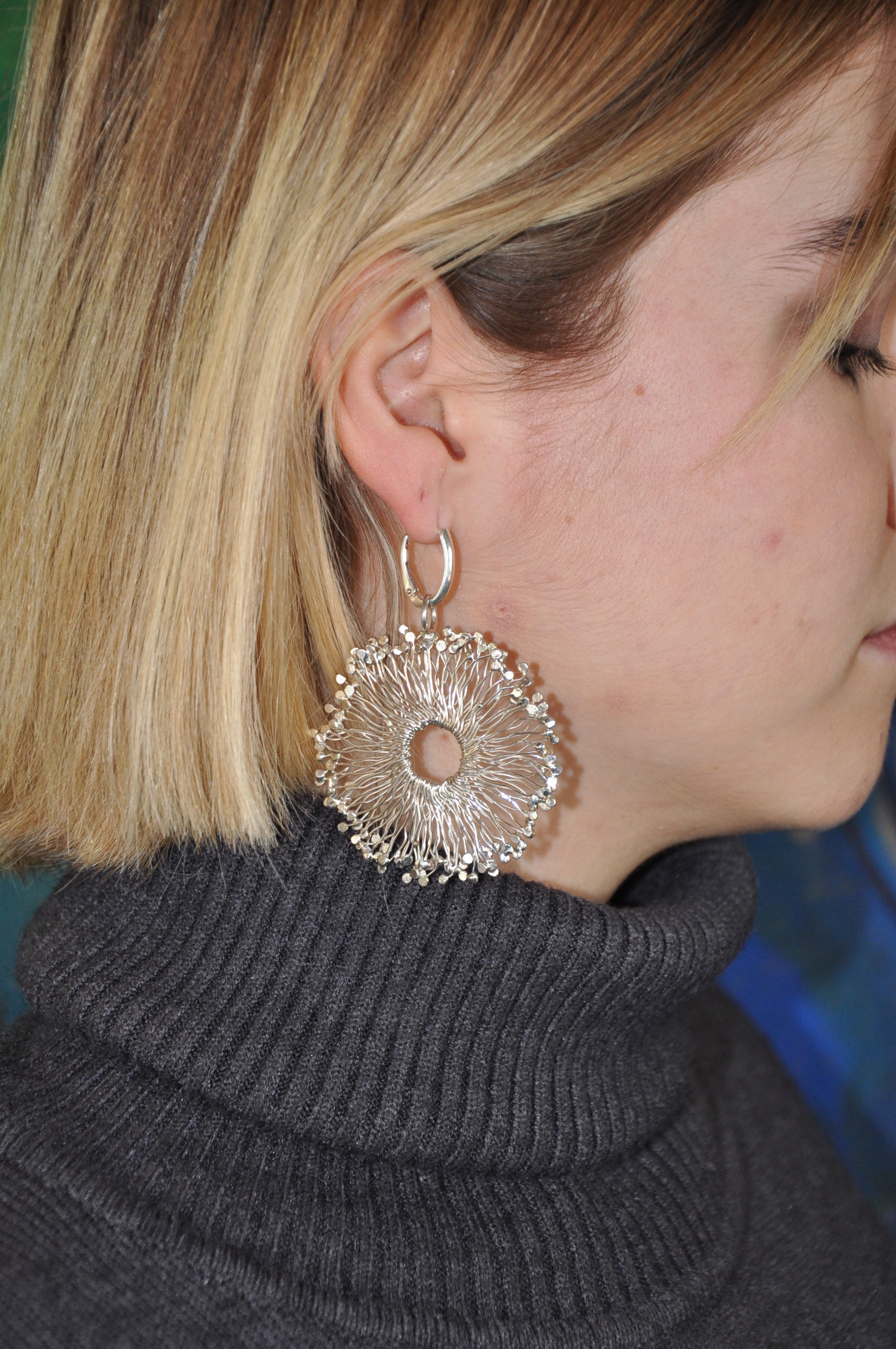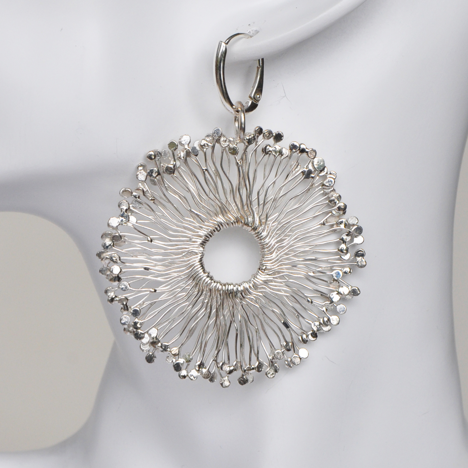 Ohrhänger - wunderschön handgearbeiteter 925 Silber Ohrring. "große Sonne" Aus kleinn Silberplättchen werden viele Silberstrahlen. Herzallerliebst! Durchmesser ca. 5 cm Etwas ganz Besonderes.