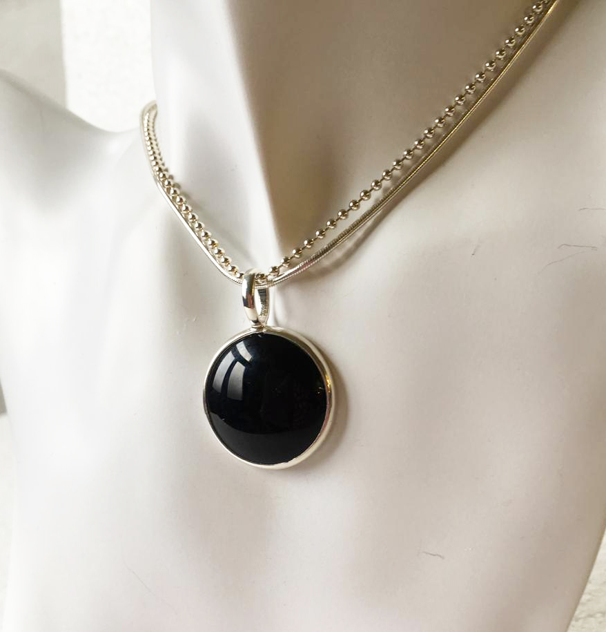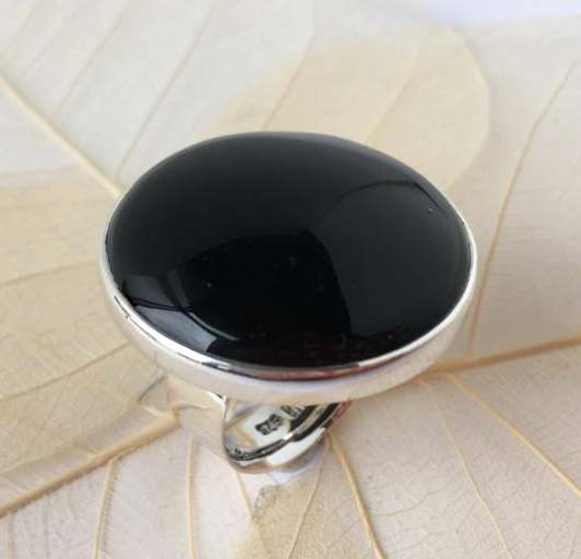 Großer Onyx Ring: Statement Ring mit extravagantem Design. Ein glänzender runder Onyx Stein verleiht dem Ring seine auffallende Schönheit, die durch seine Größe betont wird. Der Durchmesser des Steins beträgt 3 cm.