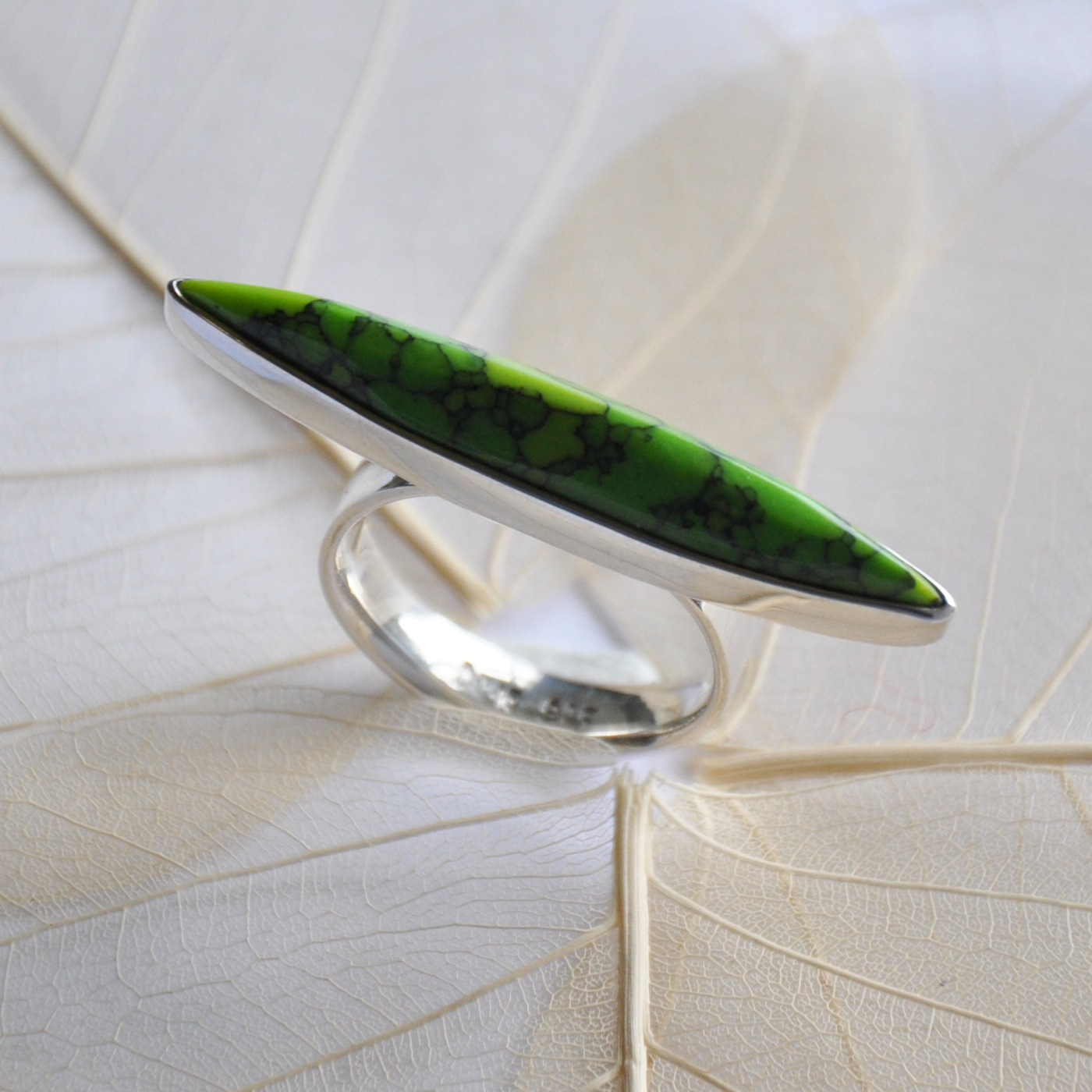 Gaspeit Ring 925 Silber: in Silber gefasster Gaspeitstein in Blattform zum Drehen
