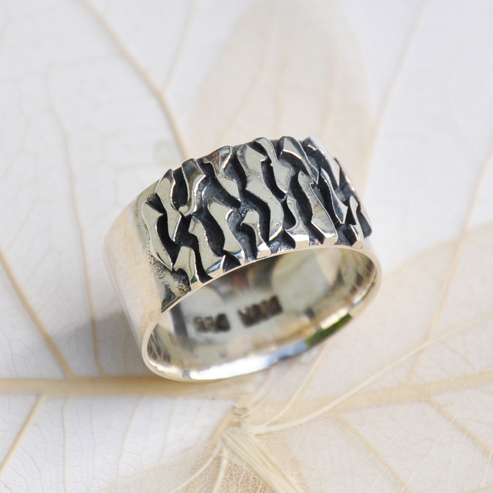 Breiter Silberring mit schwarzem Untergrund aus geschwärztem Silber,