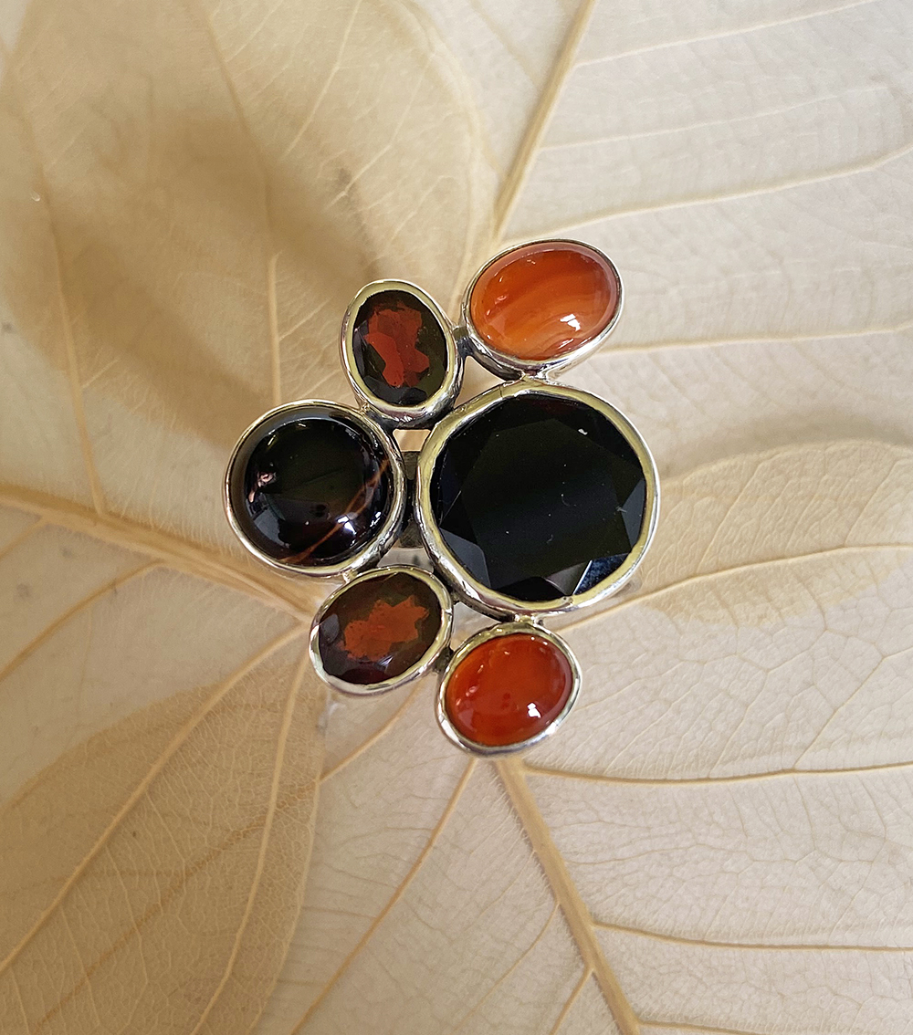 kleinen Onyx, sowie zwei Granate und zwei Karneolen.