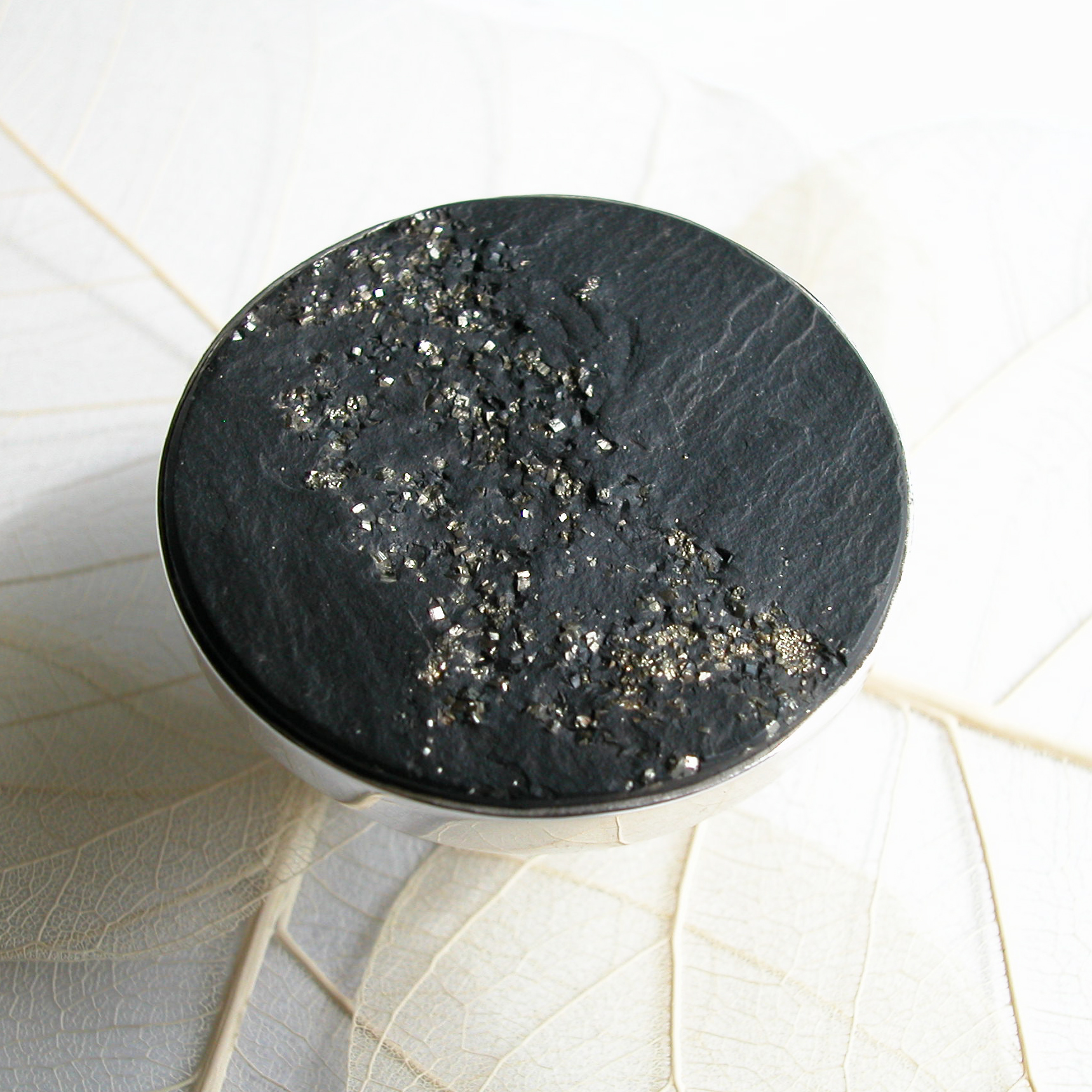 Ring aus 925 Silber mit Pyrit in Schiefer
