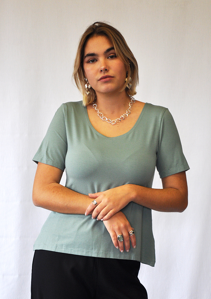 Top aus Viskose 90%, 10% Elastan Weiches, super-bequemes Shirt aus Viskosejersey mit 10% Elastan-Anteil. ein schöner weiter Rundhalsausschnitt . Farbe /Design: