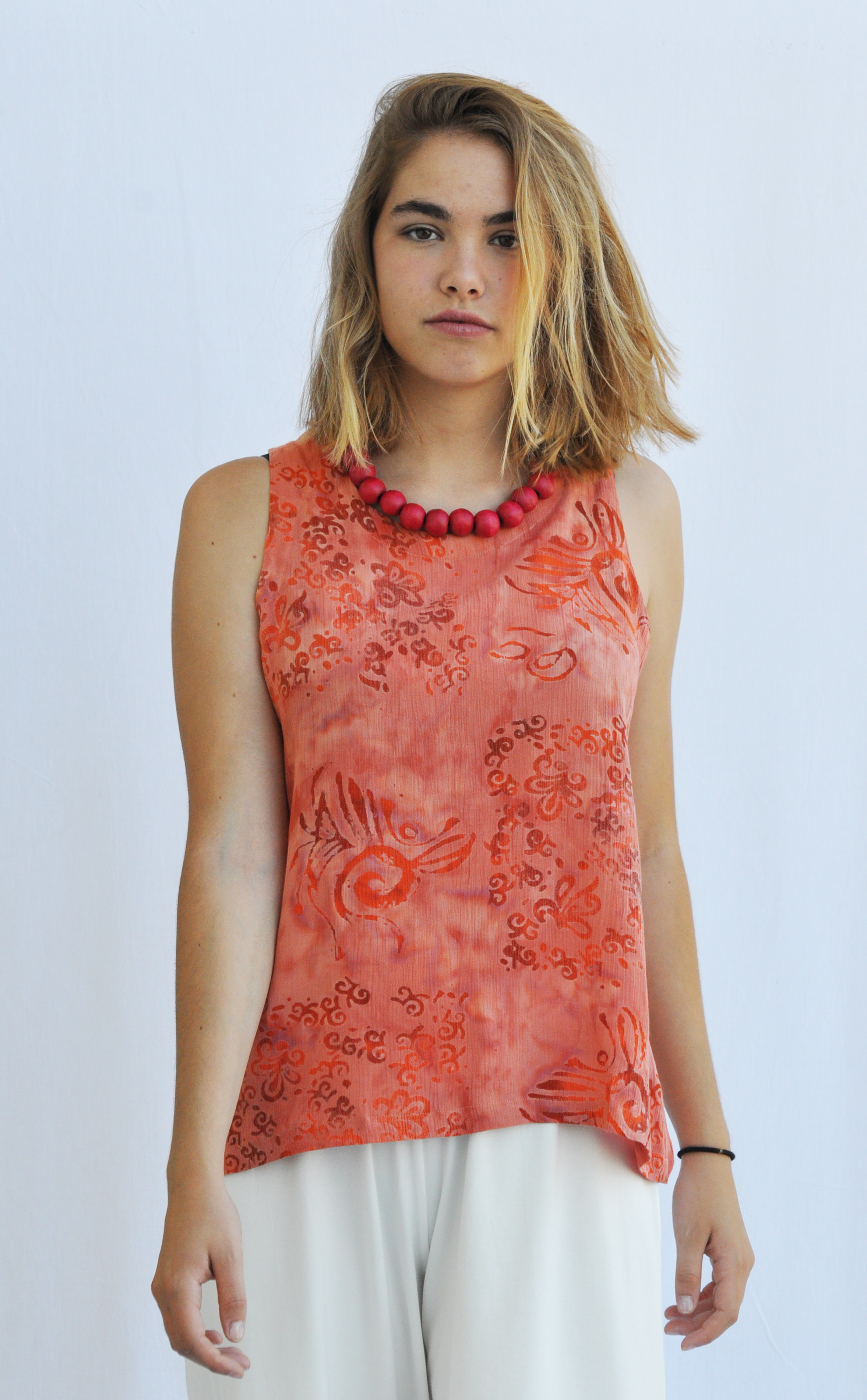Top aus Viskose 100% - Crincle, ohne Arm Einfaches, ärmelloses Top in femininer Schnittführung - passt super zu Jeans und Röcken. Schönes Top aus wunderbar leicht fließender Viskose. Ausdruckstarke Batik in bezaubernden Farbkombinationen. Design in Deutschland. bunt ~~~ batik ~~~ beautiful Farbe / Design: